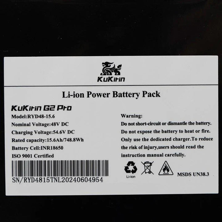 Batteria per KugooKirin KuKirin G2 Pro 48V 15.6Ah Versione 2024